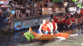 当鼓点敲响,扒仔们探身入水,先来一个“手刹”。