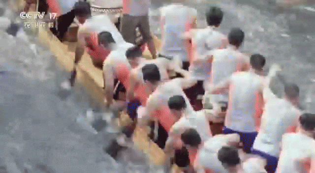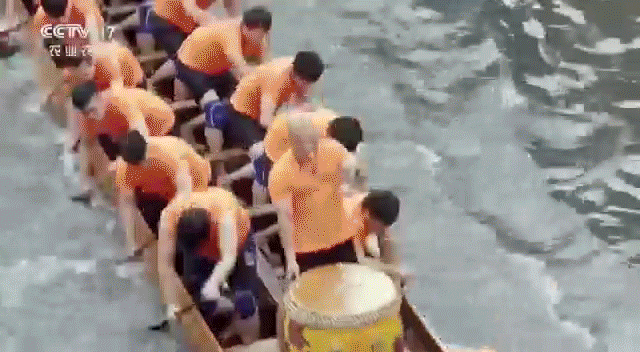 高速相机下,晒得黢黑的舵手抡起胳膊奋力摇动船桨,划出了一种跟人拼命的架势。难怪有人调侃,“这速度,屈原衣服还没湿,就被救上来了。”