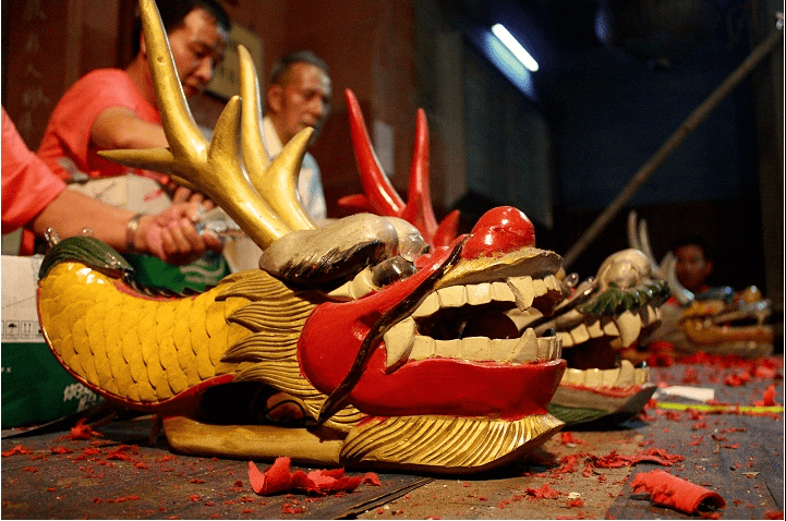 传统龙舟用坤甸木(现在多为杉木)制作,浸水更易保存,每年龙舟赛之后,人们会将龙头龙尾拆下来保存到祠堂里,船身埋到河沙之下,待到第二年再挖出来。这是赛龙舟的第一步,“起龙”。