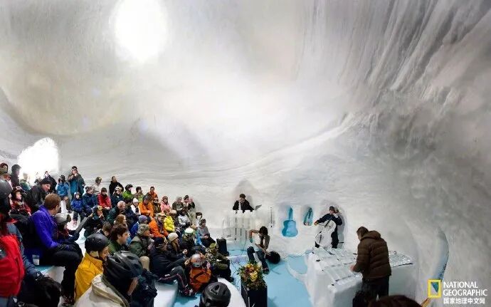 在科罗拉多州海狸溪,冰雪音乐家在冰屋风格的音乐厅里演奏。这座音乐厅的建造者是Tim Linhart和妻子Birgitta。|JACK AFFLECK, ICE MUSIC