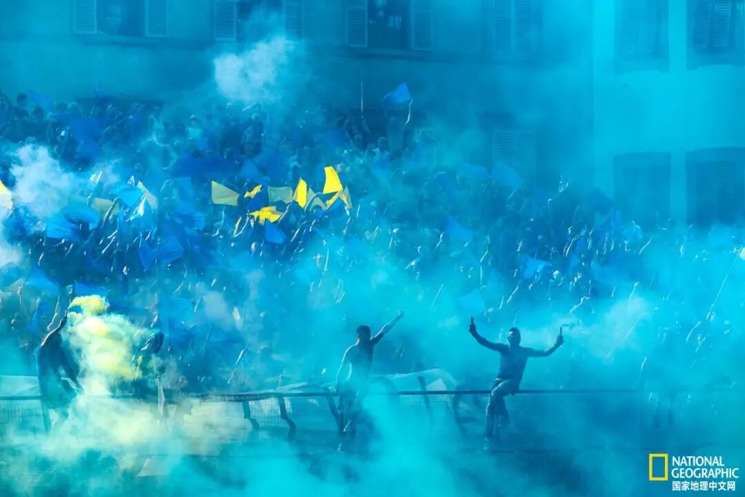 圣十字蓝衣军团的球迷们在为他们的球队欢呼。参赛队伍共有四支——比安奇、罗西、威尔第和蓝衣军团,代表了佛罗伦萨的四个历史街区。|LAWL IMAGES, DANITADELIMONT.COM