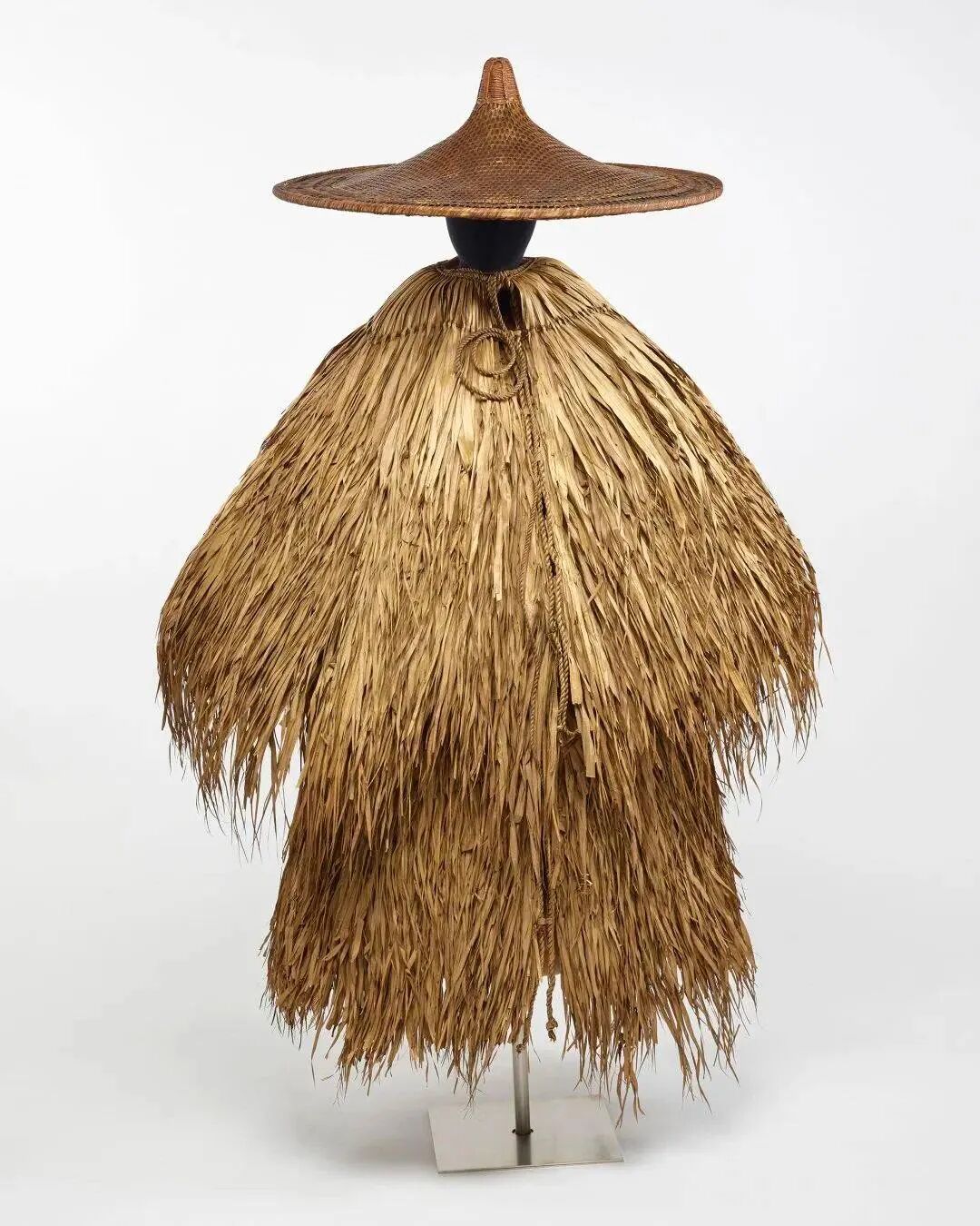 与世界首富成鲜明对比,展览展示的一套蓑衣、编织篓来自劳动阶级,此类生活用品过去鲜少登上美术馆殿堂。