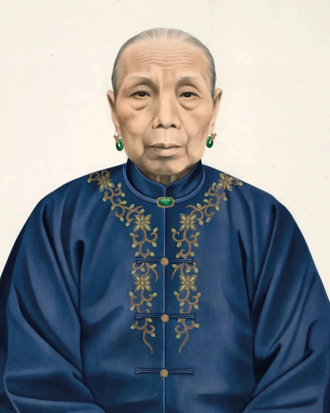 清《李夫人(陆禧甫夫人)像》。 画像风格受西方传入的摄影技术影响,比之前的肖像画更加写实 | 皇家安大略博物馆藏