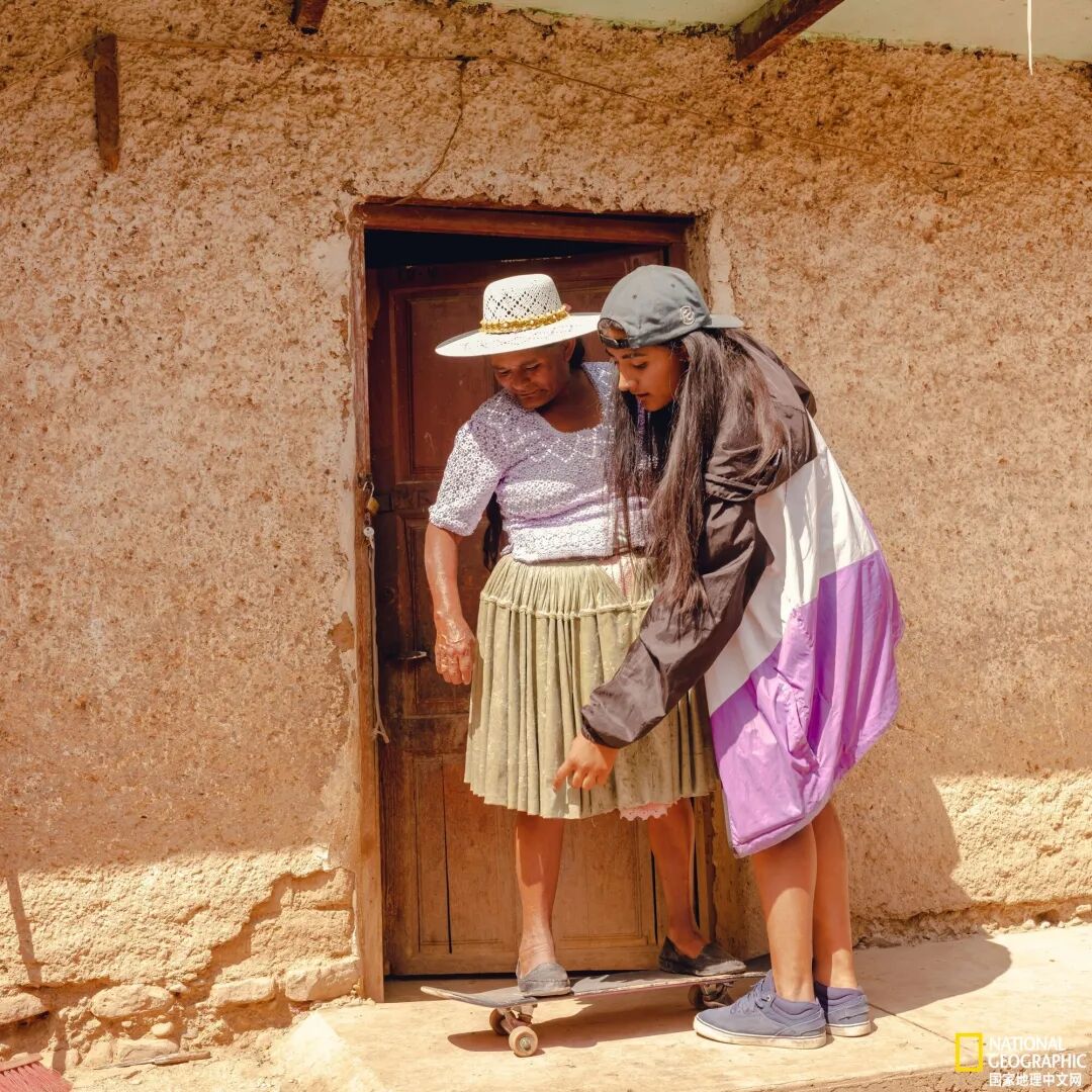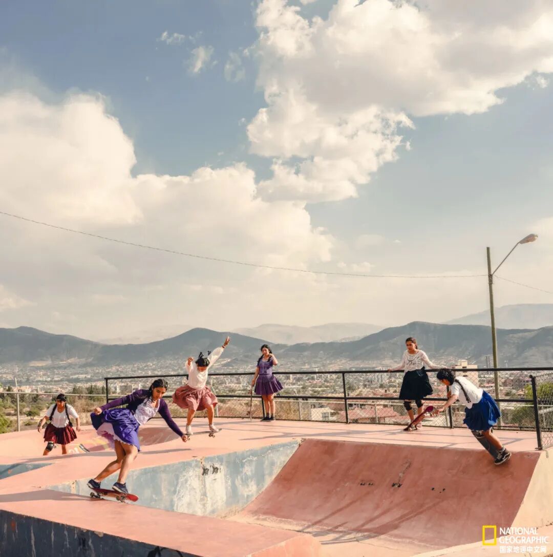 如今,一群女性滑手将这些传统服饰带回城市,以滑板表演的形式彰显“乔丽塔”(cholitas)的文化遗产。