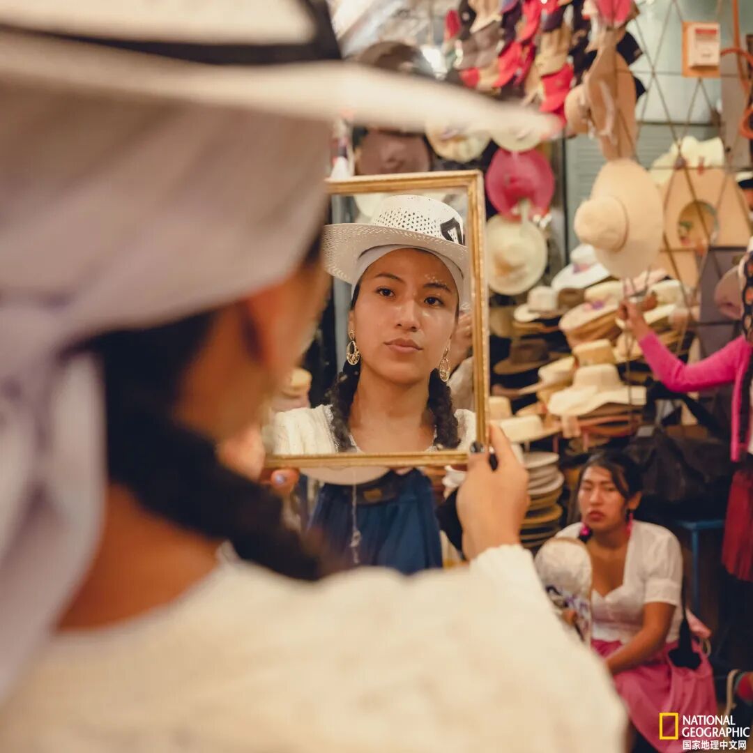ImillaSkate成员Belu正在试戴一顶原住民女性的传统帽子。“每一种饰品都有意义,”Huara Medina Montaño谈起波莱拉裙时说道。