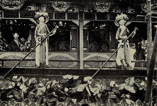 1909年,为超度慈禧太后亡灵,清政府花费十数万两白银制作了“大法船”,从照片看船身很长,亭台楼榭浑然一体。| 中国国家博物馆