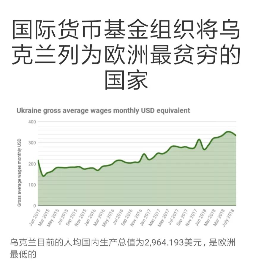▲国际货币基金组织2018年统计数据显示,乌克兰超越摩尔多瓦成为欧洲最贫穷的国家