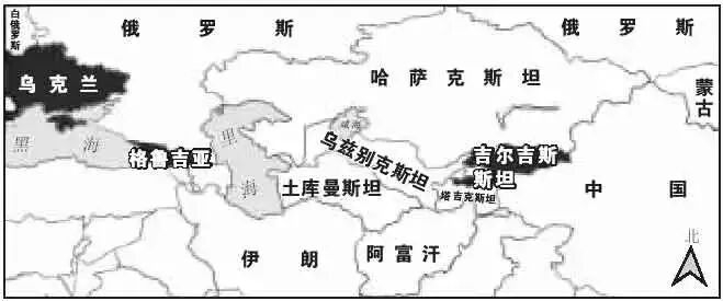 ▲前苏联成员国颜色革命示意图,哈萨克斯坦的周边也受到了颜色革命的影响
