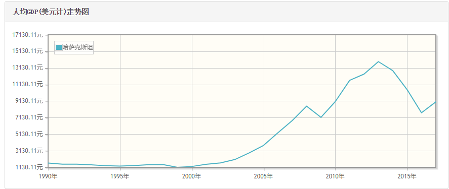 反观哈国,虽然地处大国争夺的前沿阵地,却在纳扎尔巴耶夫的带领下,经济增长迅速,政治稳定,人均GDP曾一度达到13000美元,接近发达国家水准,是乌克兰的近4倍。