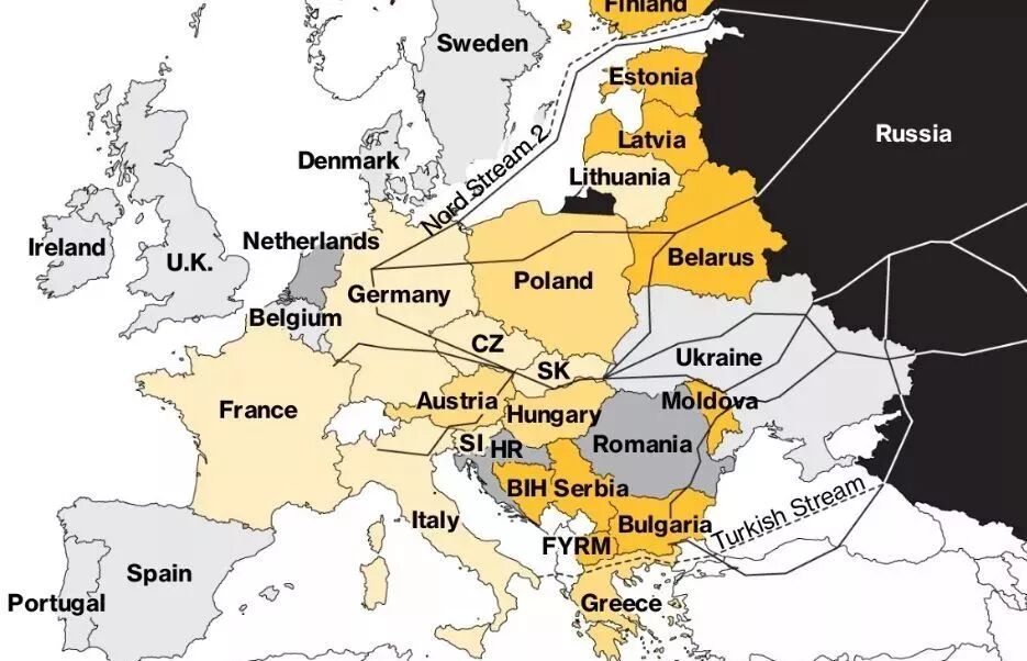 综上各种原因,使得俄罗斯的油气出口正好对上了欧盟的市场需求,双方高度互补性的能源战略给长时间的欧俄合作奠定了基础。尤其是地处欧洲中部,难以从北非、中东获得油气资源的德国、芬兰、奥地利、捷克、匈牙利等国,更是无法摆脱对俄罗斯油气的依赖。