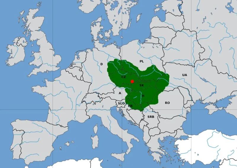 ▲大摩拉维亚公国,红色为首都,在今捷克境内