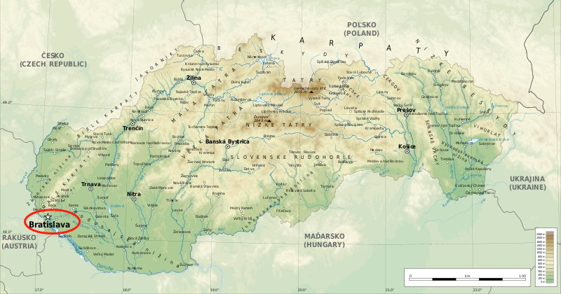 ▲斯洛伐克地形图,其中西部和东南部为平原