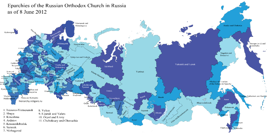 ▲俄罗斯东正教区划