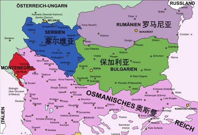 ▲从奥斯曼独立后的保加利亚和塞尔维亚