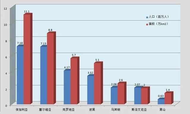 ▲保加利亚和塞尔维亚的人口和国土面积,仍然居于南斯拉夫国家前列