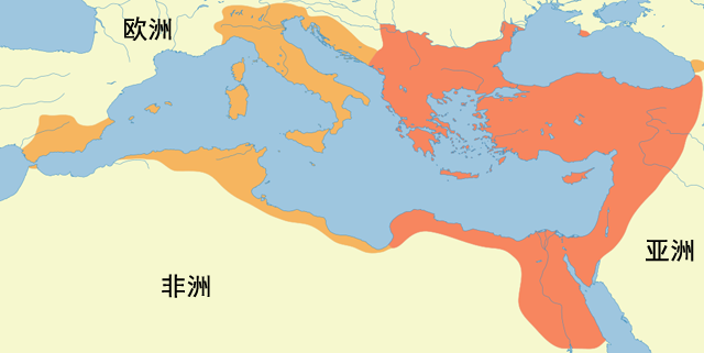 拜占庭帝国(即395年从古罗马帝国分裂出来的东罗马帝国),疆域包括现在的中东、小亚细亚、巴尔干半岛及北非部分地区,地跨欧亚非三洲,是当时最为强大的帝国。鼎盛时还向西扩张,企图恢复古罗马帝国的全国疆域。