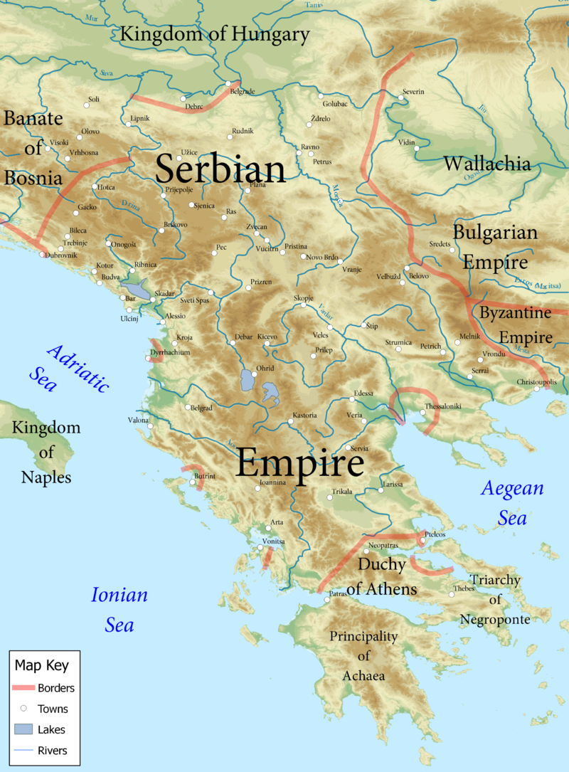 在这个过程中,塞尔维亚的实力得到增强,开始谋求摆脱拜占庭的控制。1042年,塞尔维亚王国建立,鼎盛时占到巴尔干半岛三分之二的面积。塞尔维亚与保加利亚人共同反抗拜占庭帝国,同时两者在争取其他南斯拉夫民族的问题上,保持着竞争关系。