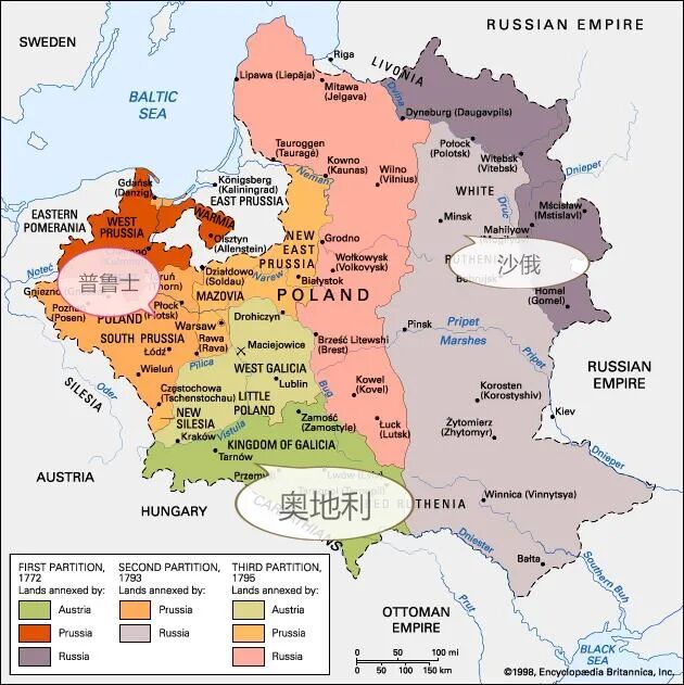 ▲波兰被三次瓜分示意图