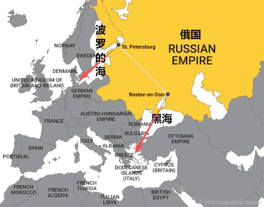 从地理上看,波罗的海、黑海出海口离大西洋太远,受制于丹麦、瑞典、土耳其等国家,使得俄国舰队难以远征大洋。日俄战争中,黑海舰队被土耳其封锁,而波罗的海舰队被迫劳师远征日本,最终一败涂地就是一个例子。海军起步晚的俄国更不具备在海上与英法等海军大国争雄的实力。