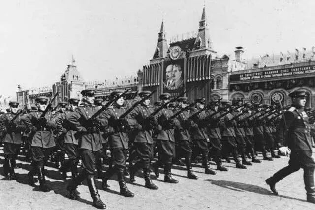 ▲1941年红场受阅部队直接开赴战场,是俄罗斯民族精神的最好体现