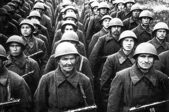 ▲列宁格勒的老年市民志愿加入保卫城市的苏联红军