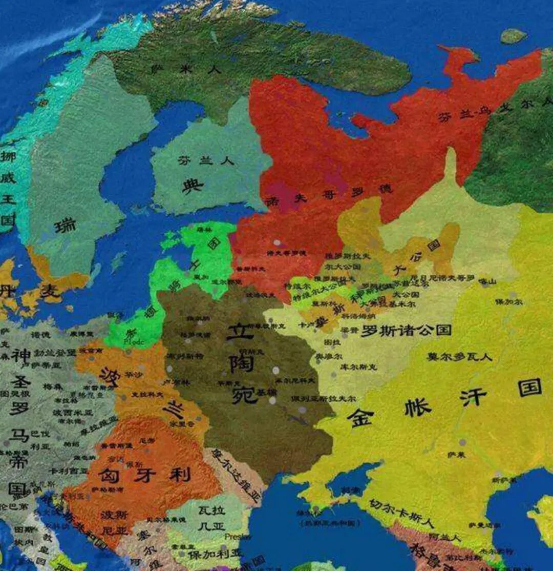 另一个就是未被占领的加里西亚和沃伦公国,他们和占领区的游牧民族骑士组成“哥萨克人”,即乌克兰民族的前身。