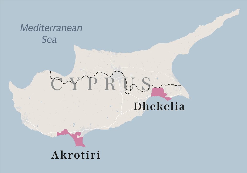 作为承认塞浦路斯独立的条件,英国获得了位于西南角和东南角的两块土地,约占全岛面积的3%。这里属于英国的海外领地,后来英国在这里建立了军事基地。