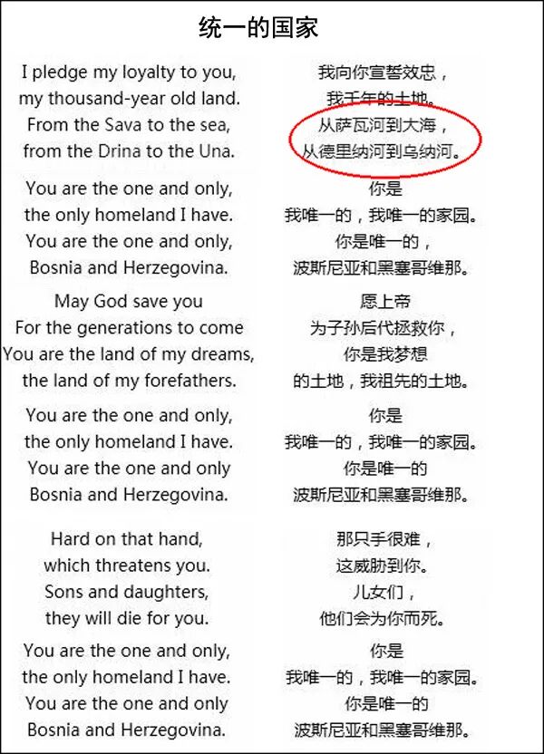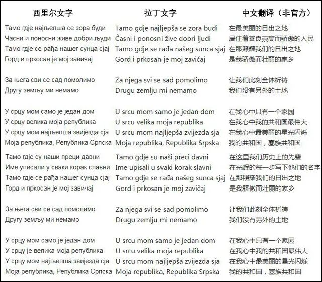 ▲2007年塞族共和国将国歌改为《我的共和国》,从头至尾没有出现“塞尔维亚”字样