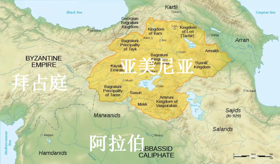 公元884年,在拜占庭帝国的支持下,亚美尼亚人建立“巴格拉提德王朝”。但亚美尼亚依然处于两大帝国的夹击下。