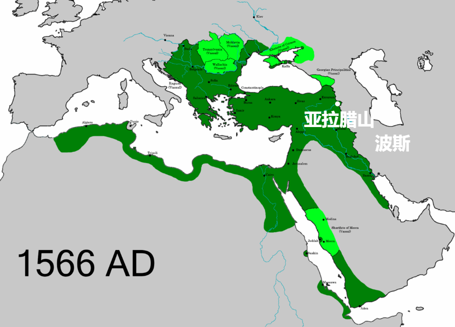 ▲1566年,奥斯曼和波斯的大概边境