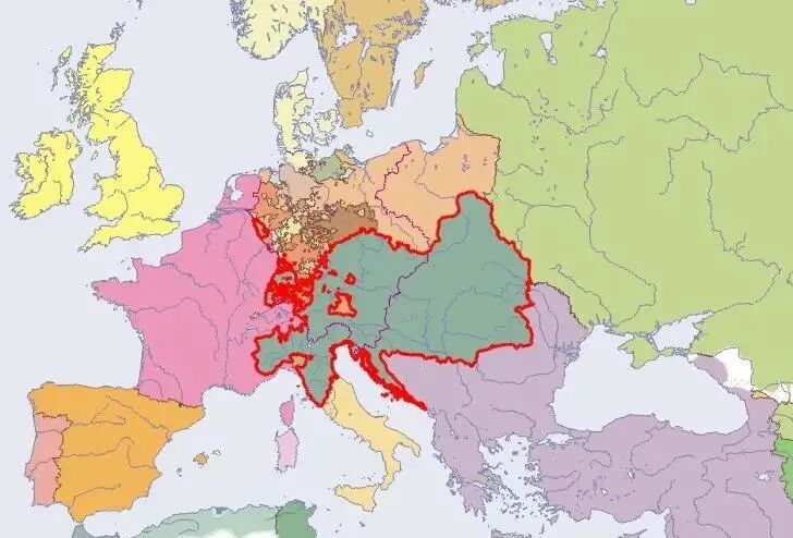 ▲奥地利哈布斯堡王朝(红圈内)