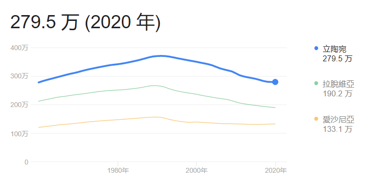 从数据不难看出,作为苏联加盟共和国,在苏联解体前夕三国境内都生活着数量庞大的俄裔居民,爱沙尼亚、拉脱维亚的俄裔占比更是达到了三分之一。