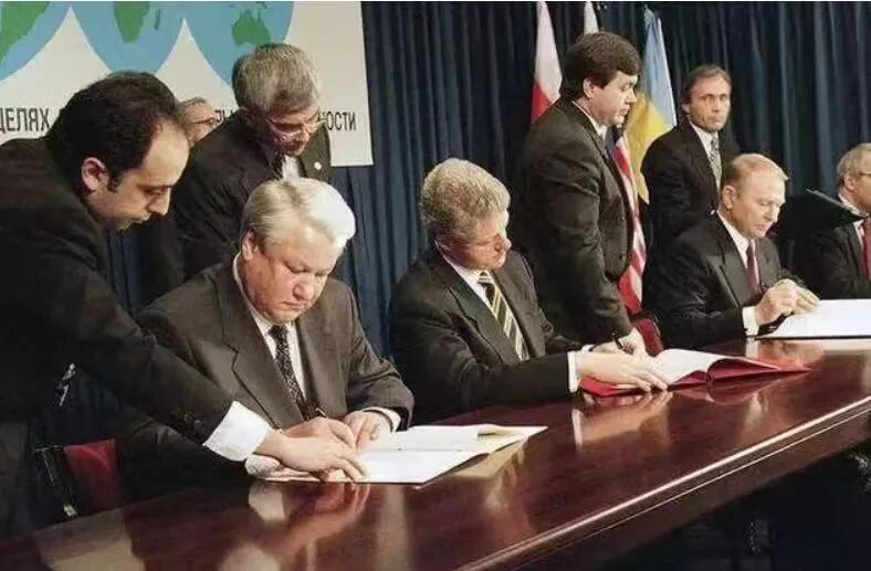 外交家们在谈判桌上唇枪舌剑,最终乌克兰同意交出全部战略核弹头。美国在1.75亿美元的基础上,再追加3.5亿美元援助。核弹头销毁后产生的浓缩铀,俄罗斯同意把出售收入与乌克兰分享,同时向乌克兰的核电站提供商用浓缩铀。
