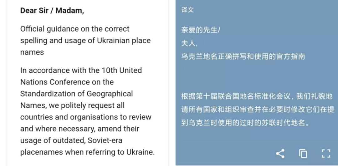 苏联政府也积极推广俄语化后的地名,作为苏联的一部分,乌克兰没有机会也没有能力为自己争取“地名话语权”,俄式发音的乌克兰地名成为全球通用地名。