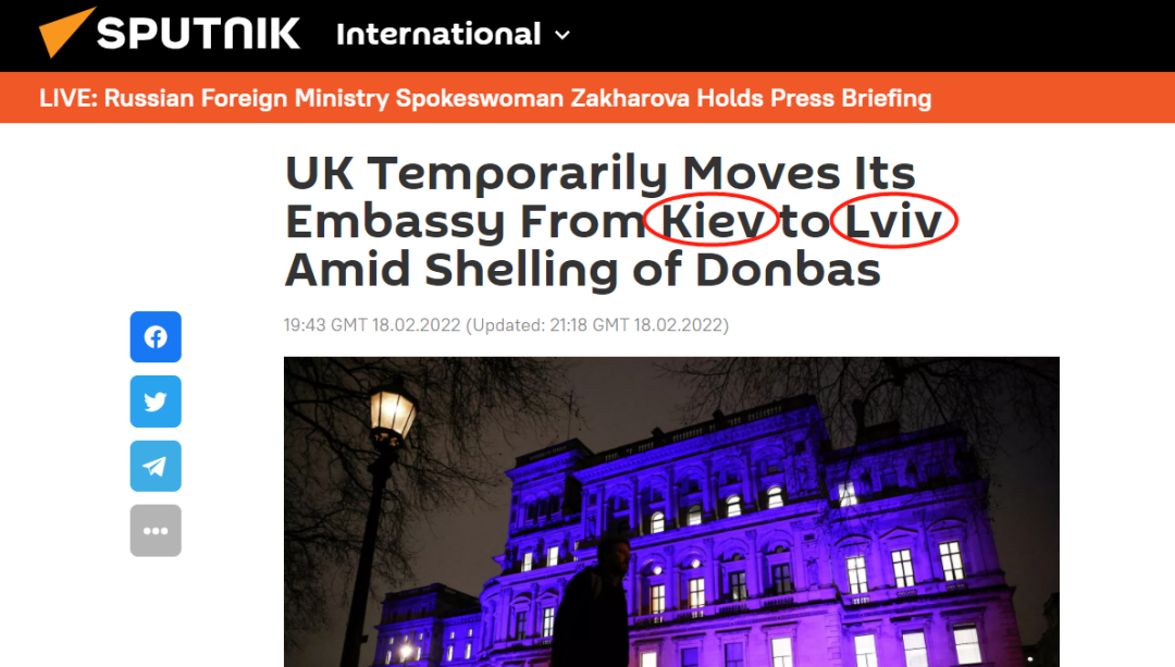2022年俄乌战争爆发后,西方媒体在口头上给予了乌克兰大量支持,其中就不乏对Kyiv的推广。连西方国家超市里售卖的基辅板栗蛋糕、基辅炸鸡等食品也被换上了标有Kyiv的新标签。