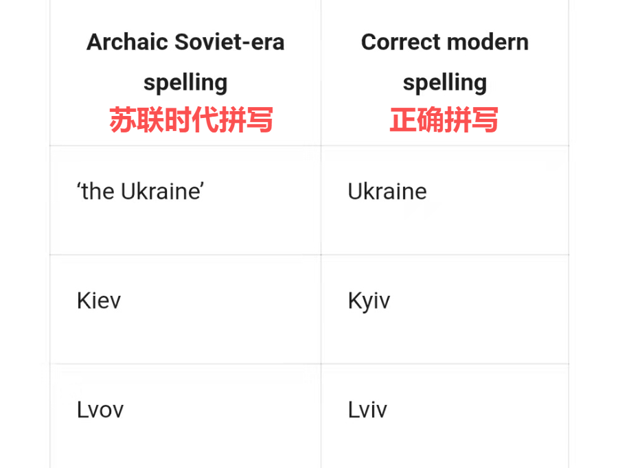 比如乌克兰第二大城市哈尔科夫英文译名由Kharkov改为Kharkiv;第一大港口敖德萨由Odessa改为Odesa;西部城市利沃夫由Lvov改为Lviv。
