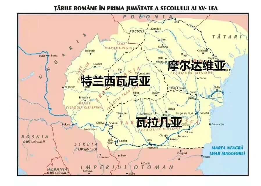 16世纪初,奥斯曼帝国入侵巴尔干半岛。最终瓦拉几亚和摩尔达维亚承认了奥斯曼帝国的宗主权,沦为了这个伊斯兰帝国的附庸。由于地处多瑙河下游,这两个公国也被称为“多瑙河两公国”。而临近的特兰西瓦尼亚则被匈牙利人占领。