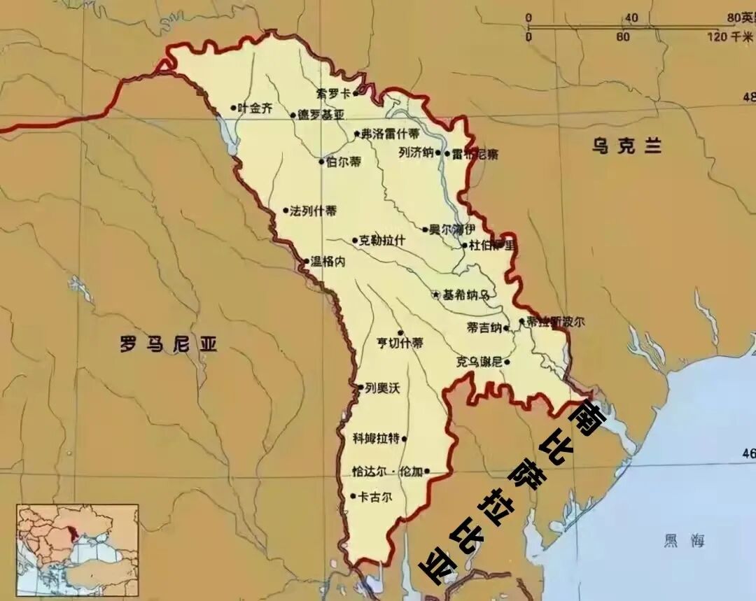 1991年苏联解体,建立在比萨拉比亚土地上的摩尔多瓦共和国(面积约3.3万平方公里)获得独立,由于南比萨拉比亚划归乌克兰,独立后的摩尔多瓦成为内陆国。