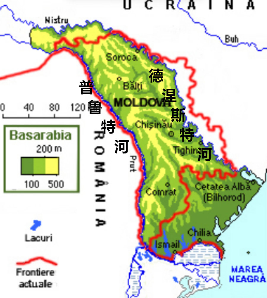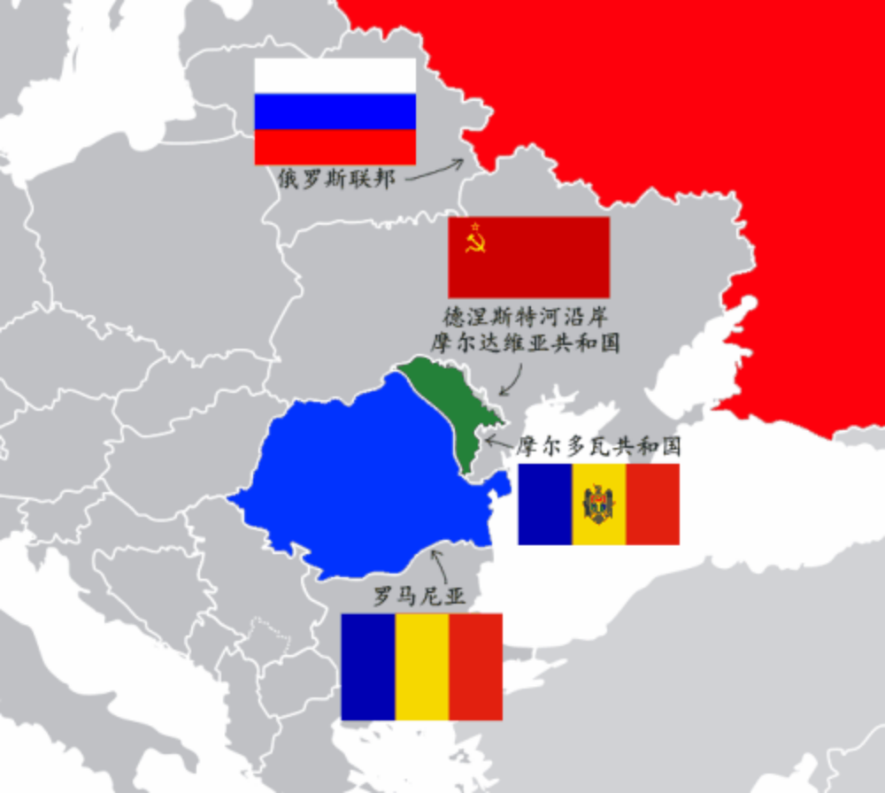 ▲比萨拉比亚(红色阴影)与摩尔达维亚自治共和国