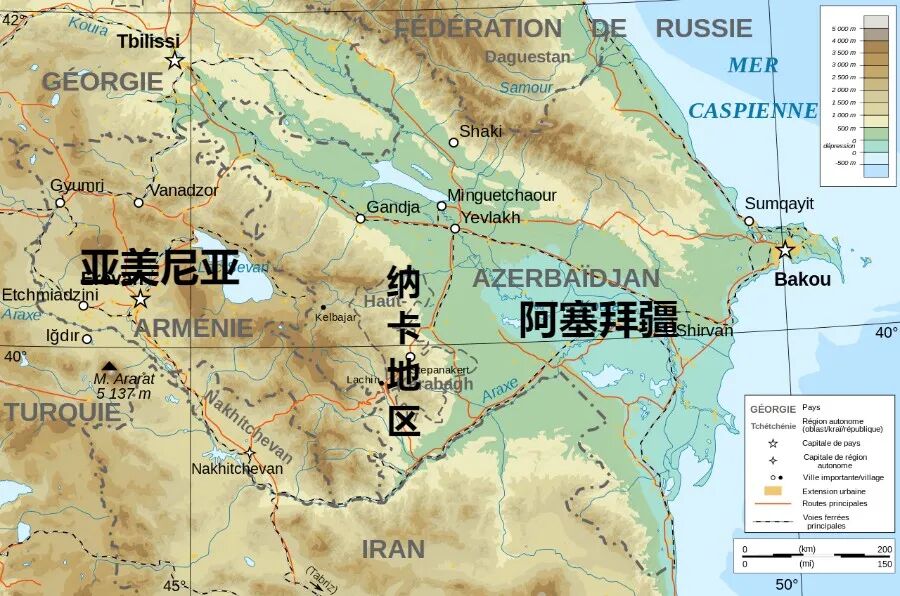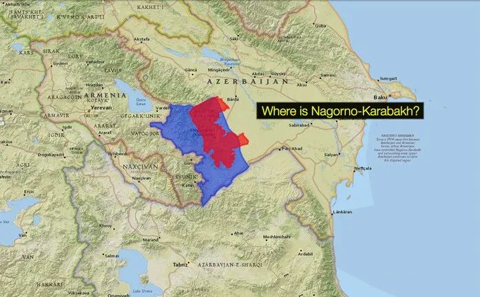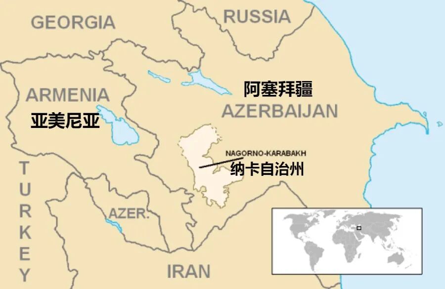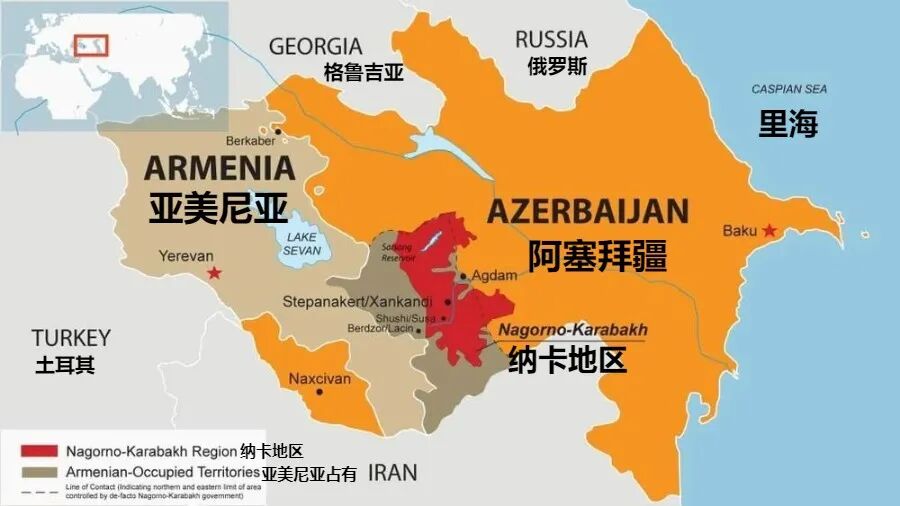 ▲纳卡地区(纳卡共和国)所在的位置,包括原纳卡州和亚阿两国的边境地区