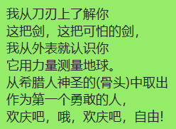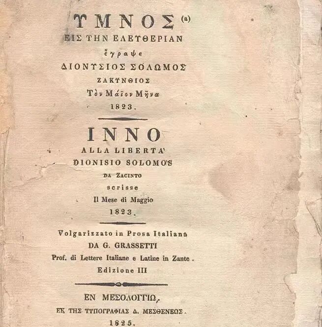1823年,当希腊独立运动陷入低潮之时,希腊诗人索莫洛斯写了一首长达158节的长诗《自由颂》。