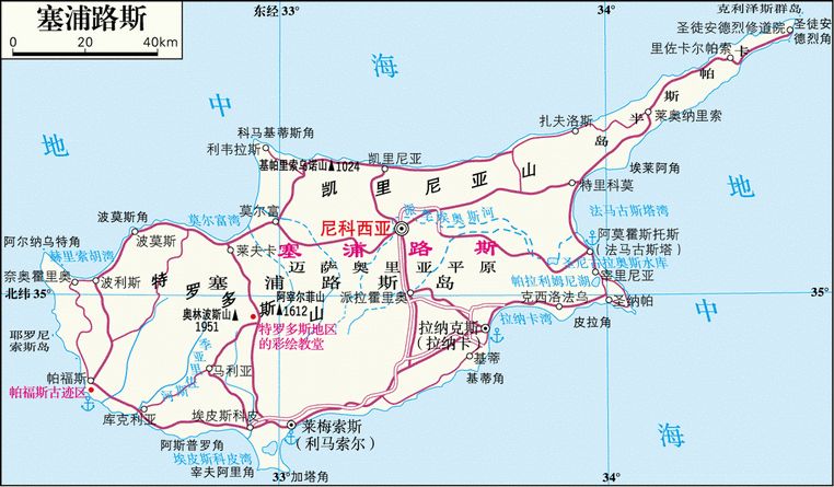塞浦路斯岛岛上最大城市尼科西亚为界,北部36%的土地被土耳其扶持的“北塞浦路斯共和国”(北塞)控制,南部大部分地区被希腊族控制的塞浦路斯共和国(本文的“塞浦路斯”特指岛南部的塞浦路斯共和国)。