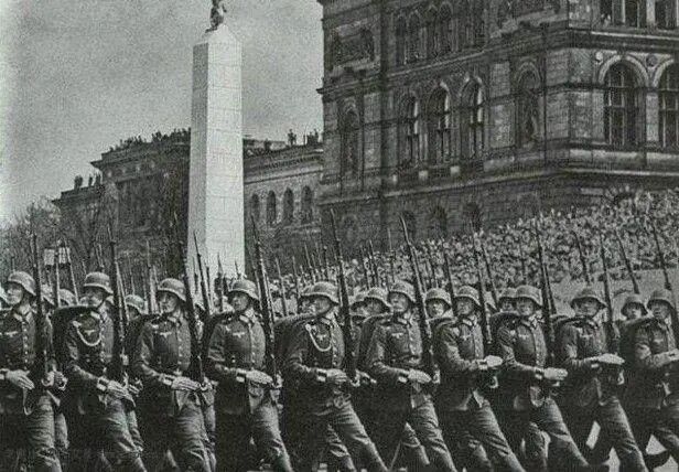希特勒吞并奥地利后,对捷克斯洛伐克境内德意志人聚居的苏台德地区提出领土要求。秉持绥靖主义的英法等国出卖了捷克斯洛伐克,以《慕尼黑协议》的形式同意了德国对苏台德地区的吞并,以换取德国不发动战争。次年3月,德军入侵捷克斯洛伐克,吞并了捷克地区的剩余部分。
