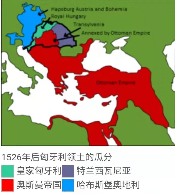 拉约什二世的姐姐嫁给了奥地利大公斐迪南一世(出身哈布斯堡家族),凭借姻亲关系斐迪南一世继承了匈牙利王位。同一年斐迪南一世还获得了波西米亚的王位,奥地利、匈牙利、捷克、斯洛伐克被纳入哈布斯堡家族治下。
