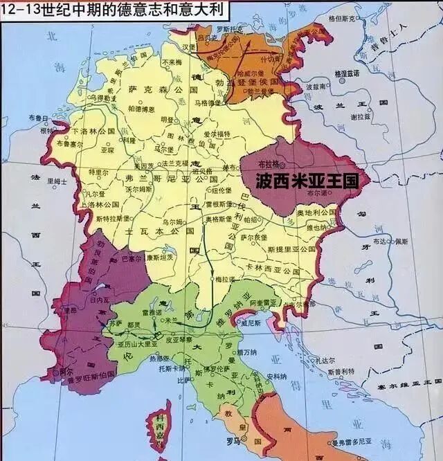 公元1086年,波西米亚大公接受了神圣罗马帝国的册封,成为帝国境内唯一一个斯拉夫人占多数的主要藩国。12世纪,波西米亚升级为“王国”。由于波西米亚的捷克王公绝嗣,德意志贵族凭借联姻入主波西米亚。