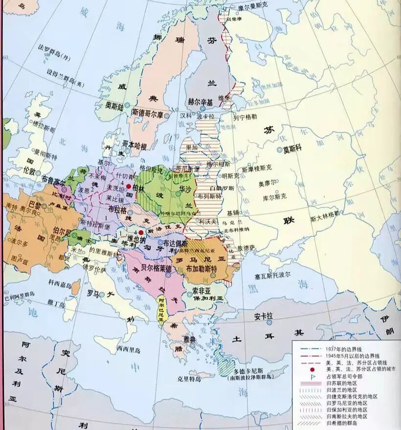▲二战后欧洲领土变迁