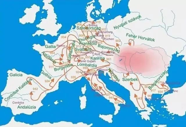 他们远亲——匈牙利人离开乌拉尔山地区的时间较晚。直到公元7世纪时期,匈牙利人才开始向西迁徙。到公元8世纪时期,他们迁徙到多瑙河中游平原。公元9世纪末,建立了匈牙利。