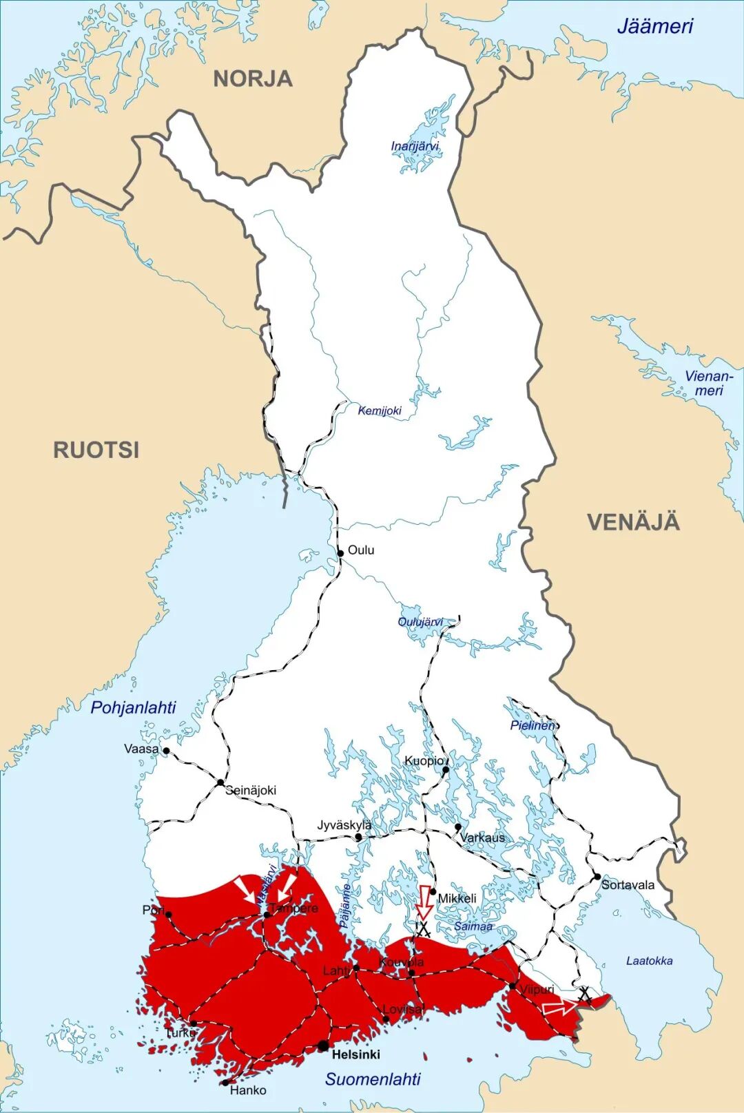 但“大芬兰主义”在20世纪30-40年代走向破产。20世纪30年代,德国引起了欧洲的不安。1939年,苏联和德国签订《苏德互不侵犯条约》,苏联通过这一条款欲向西扩张,意图将北起芬兰、南至黑海一带再次成为苏联势力范围。