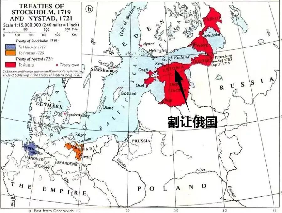 ▲大北方战争后,瑞典把爱沙尼亚附近割让给俄国