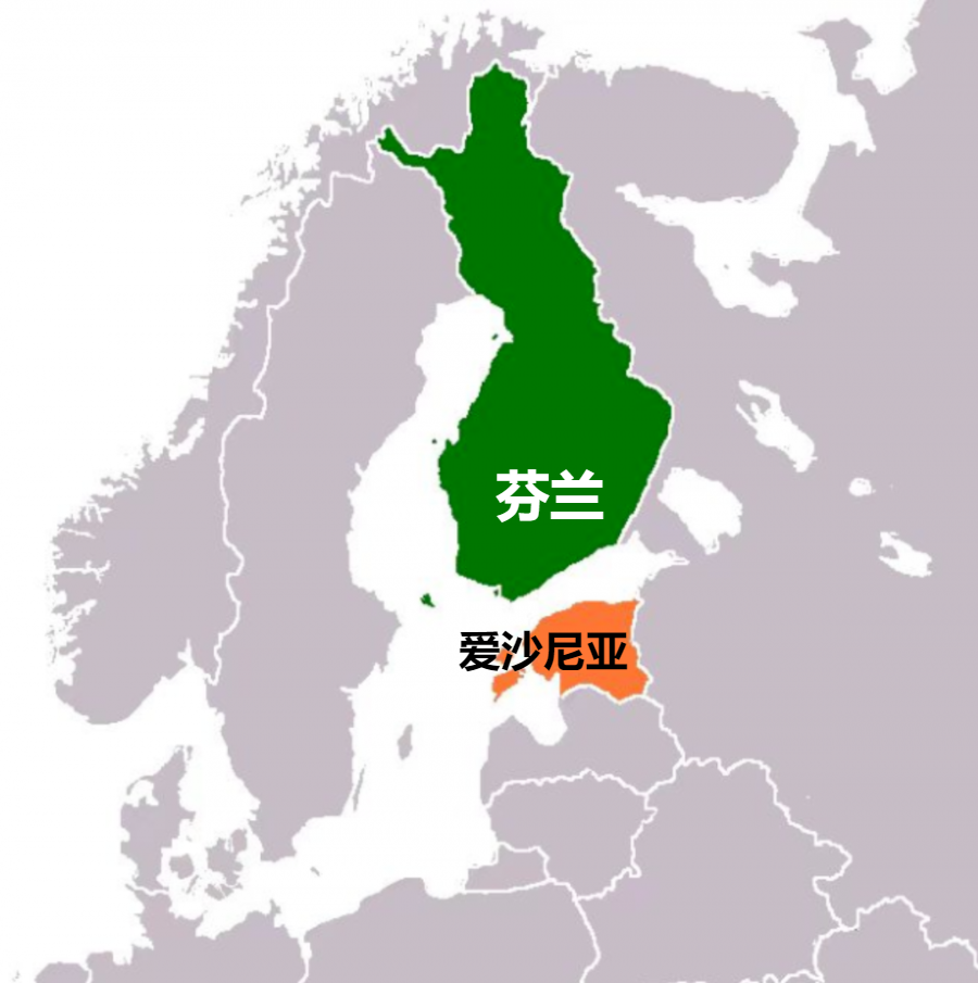 ▲芬兰(绿)和爱沙尼亚(橙色)